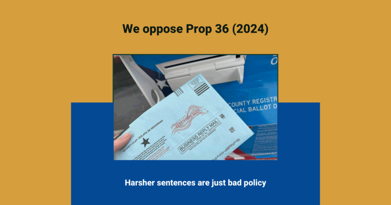 We oppose Prop 36 because harsh sentences are poor public policy. We prefer programs that reduce recidivism and support reintegration into society.